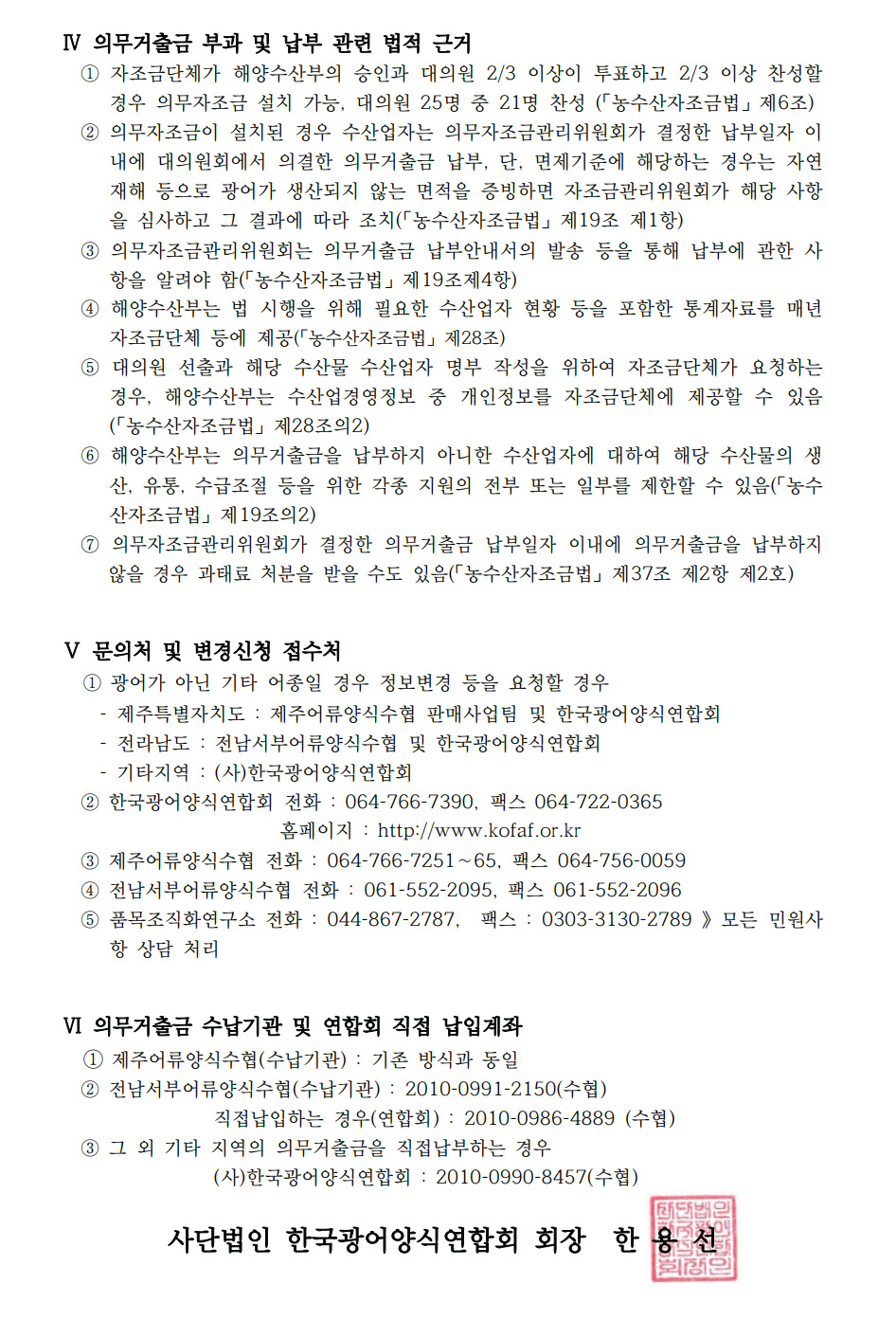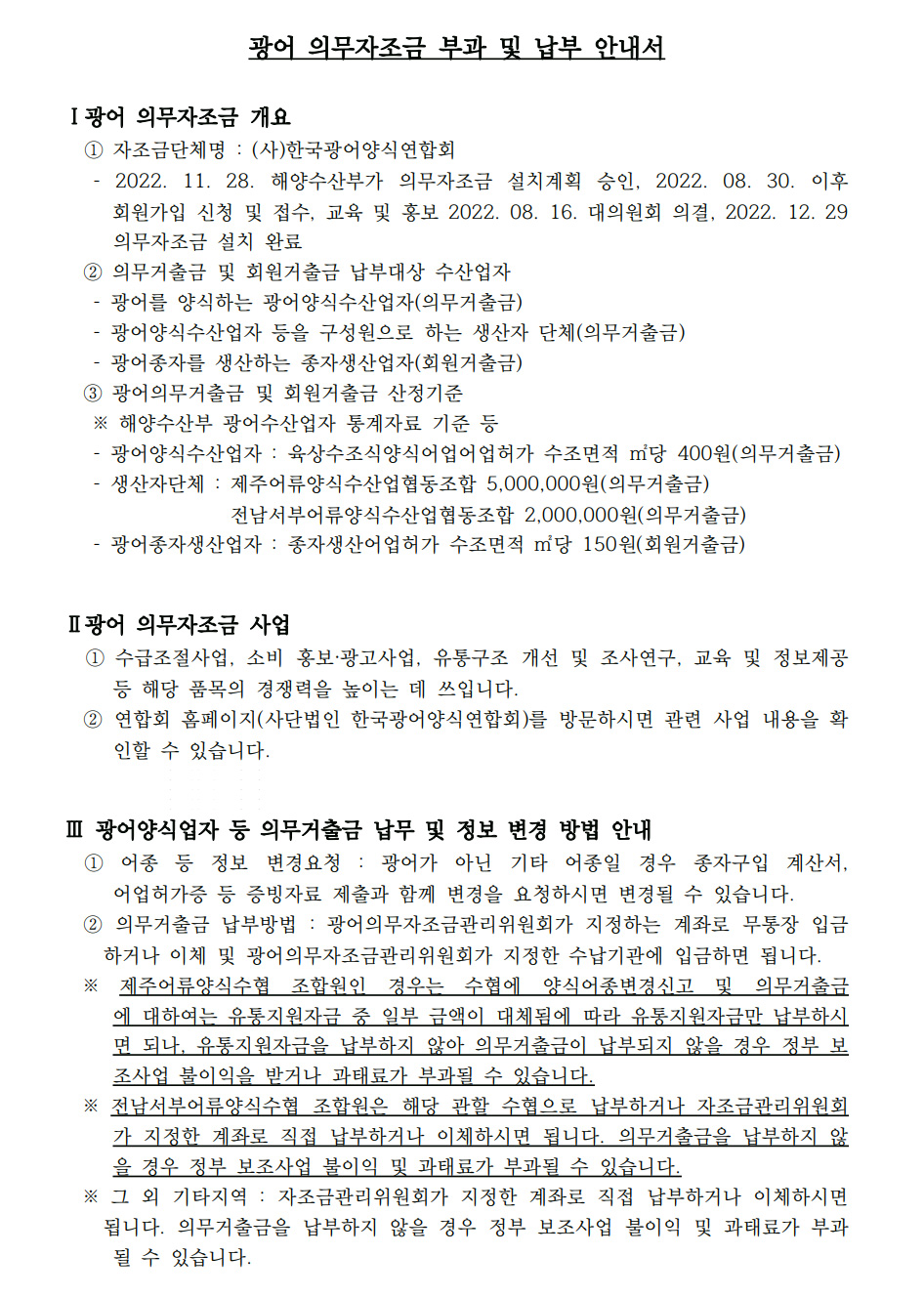 광어 의무자조금 부과 및 납부방법